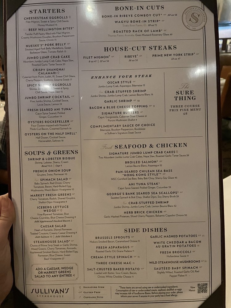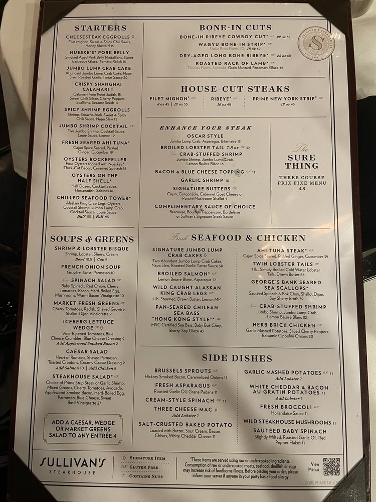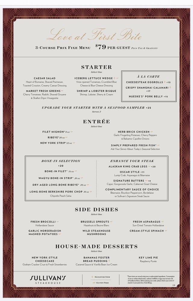 Sullivan's Steakhouse AK Menu